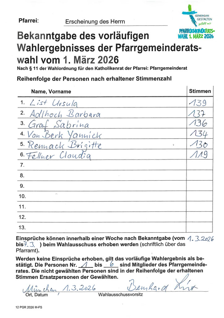 Ergebnis der PGR-Wahlen 2026