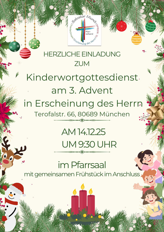 Spiele, erzählen, basteln und ein warmes Mittagessen Anmeldung bis zum 17.11.25 im Pfarrbüro.