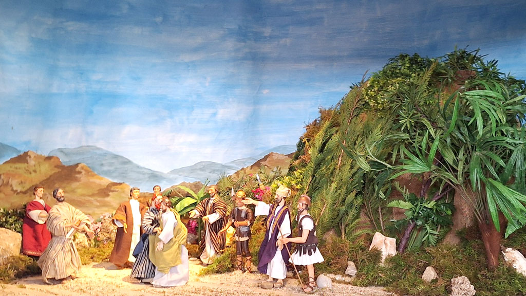 Jahreskrippe – Thema: Der Judaskuss (Matthäus 26,48)