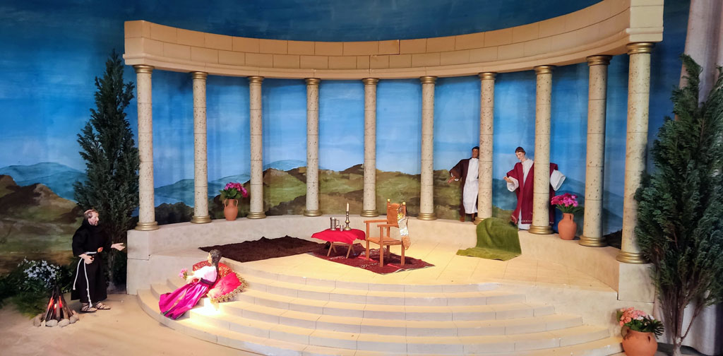 Jahreskrippe – Thema: Hl. Thomas von Aquin – die Versuchung