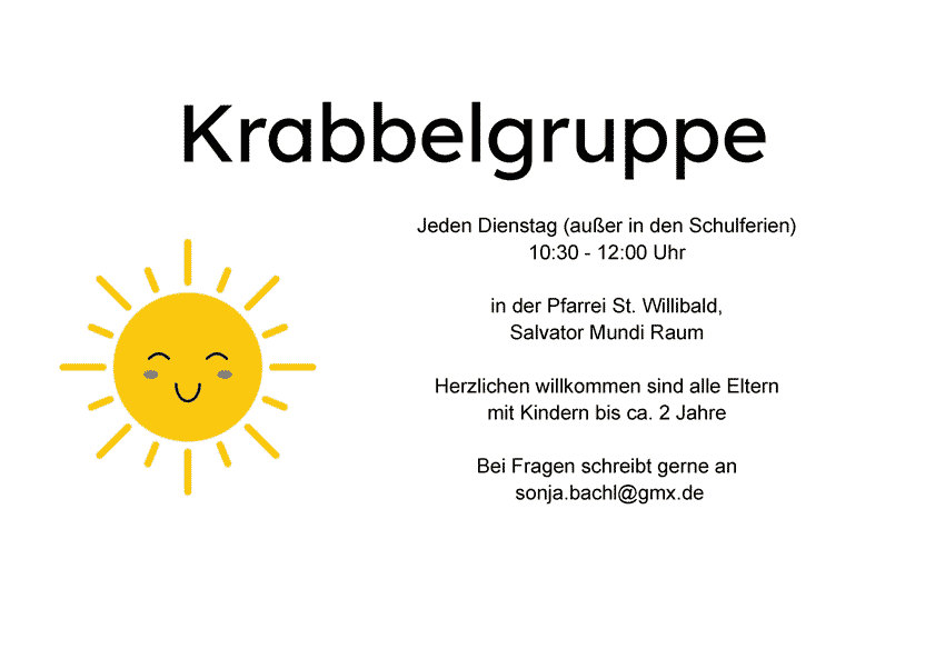 Krabbelgruppe jeden Dienstag von 10:30 – 12:00 Uhr