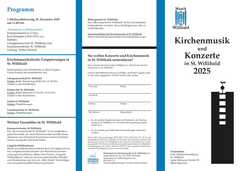 Kirchenmusik und Konzerte in St. Willibald