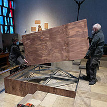 Für den Kirchen-Stadl und die Konstruktion wurde die Firma „red cube conventions“ von Andreas und Johannes Keber durch die Kirchenverwaltung beauftragt.
